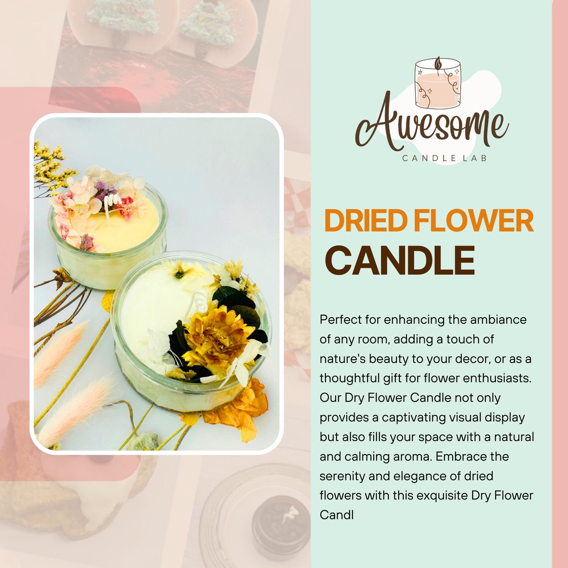 Our Dried Flower Candle is encased in a chic, reusable jar, making it a sustainable choice for those who appreciate eco-friendly products. Whether displayed on a coffee table, used as a centerpiece, or given as a thoughtful gift, this candle is a celebration of the delicate beauty found in nature, preserved and presented in a form that brightens and enhances your living space.