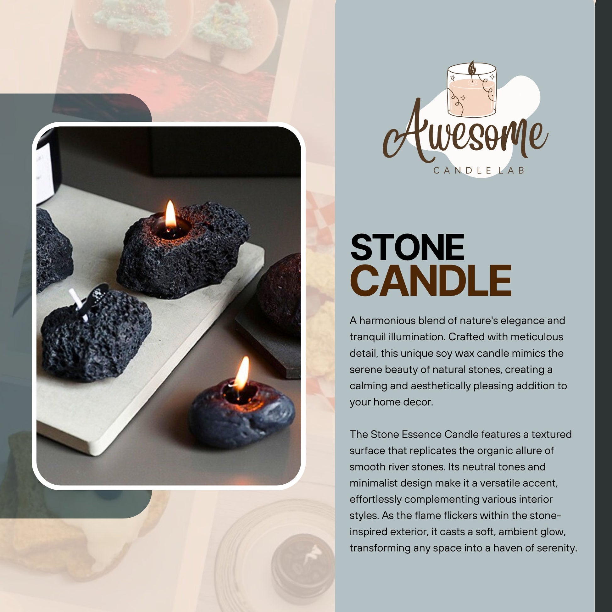 A harmonious blend of nature's elegance and tranquil illumination. Crafted with meticulous detail, this unique soy wax candle mimics the serene beauty of natural stones, creating a calming and aesthetically pleasing addition to your home decor.